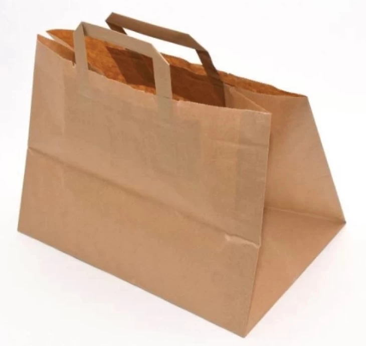 Set 250 bucăți Pungi Hârtie 22x12x28 cm, Kraft, Mâner Plat
