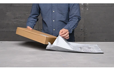 Buzunarul se închide prin suprapunerea foliilor ce îl formează, fără lipire, așa după cum se observă în poza produsului.